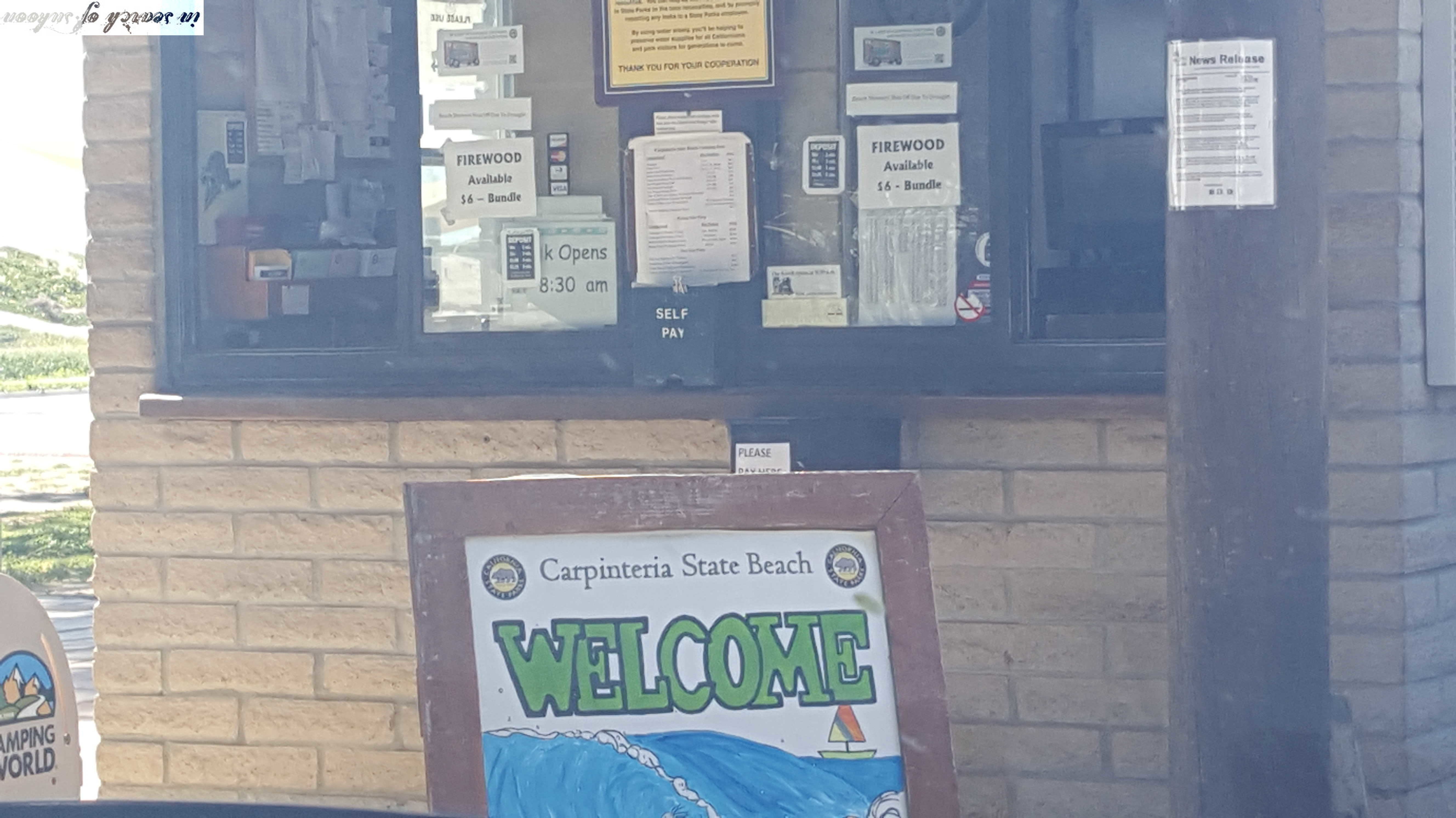Entrance to Anacapa Camp GroundCarpinteria Campsite WelcomeEntrance to the campsite from Linden AveCampsite on left, beach on right