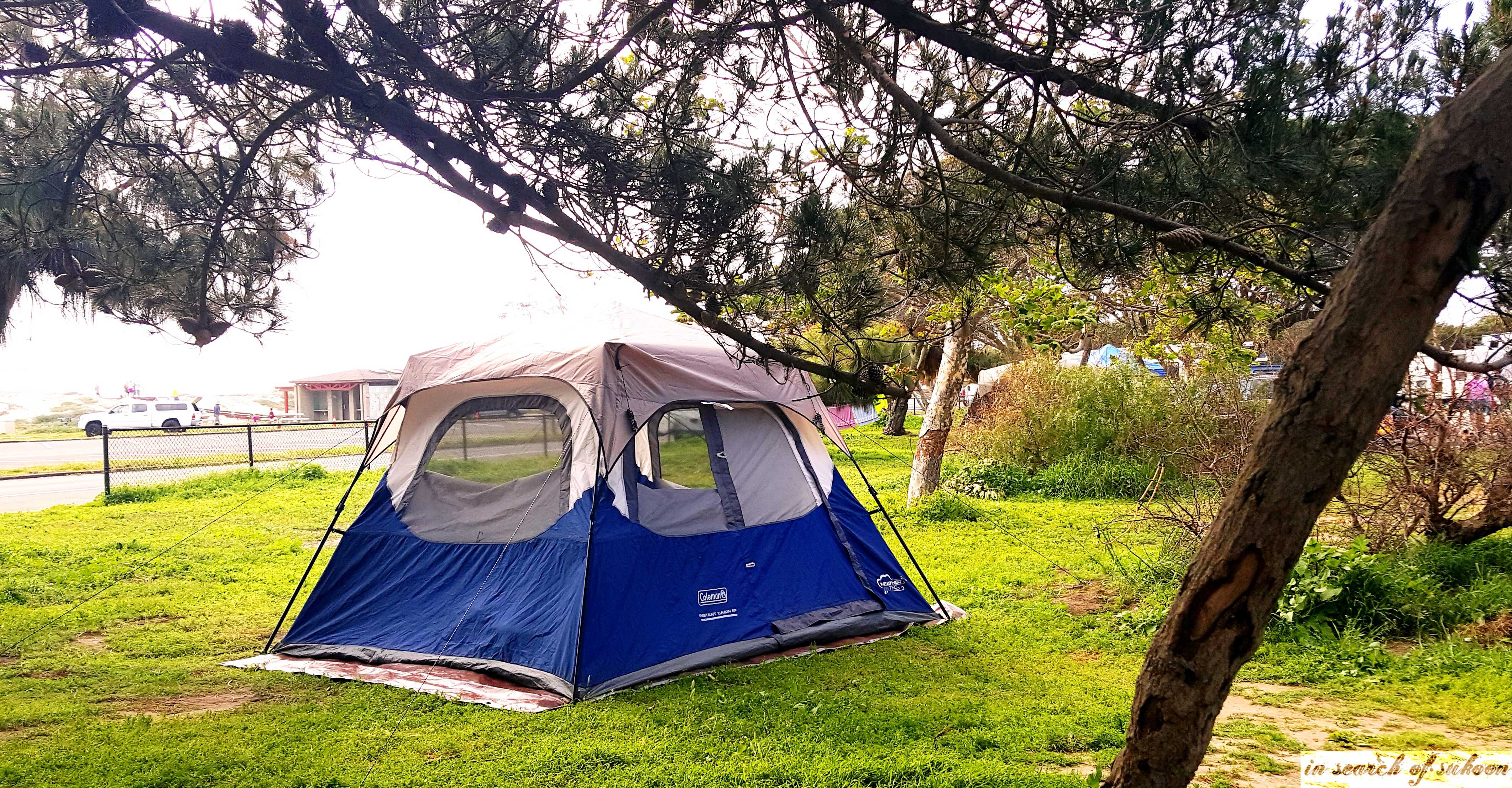 Our camp spot had a lot of shrubs and small trees and fitting two tents side by side was impossible. We ended up setting them almost perpendicular to each other. Also the parking was laid at such an angle that it was impossible to fit two cars. Eventually, after unloading we had to park one of the cars in the general beach parking which was across the campsite. This is not the issue with all camp spots.