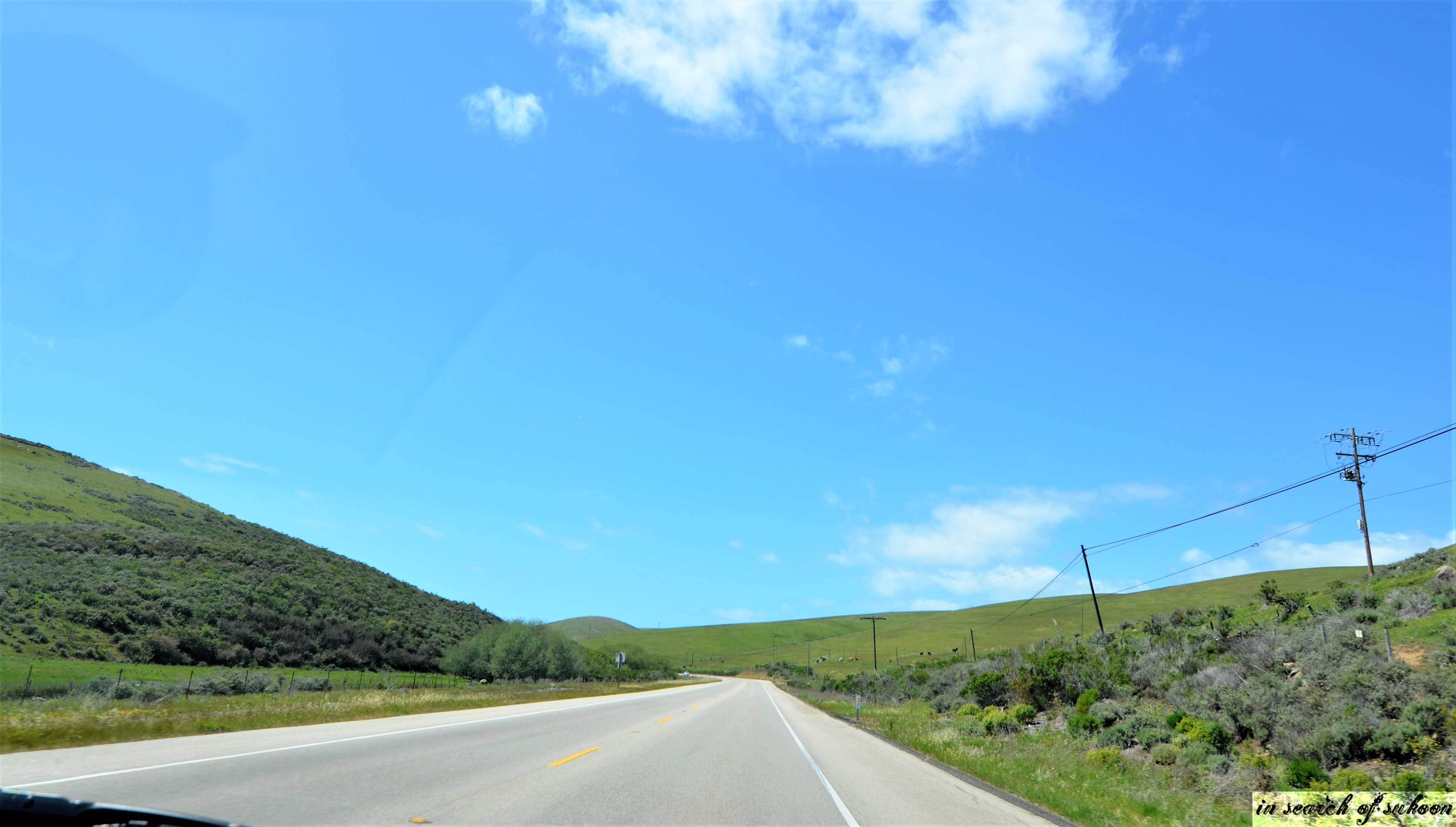Cayucos is around 2 hours drive, west of Santa Barbara. We drove beside the ocean for a while then the roads took an inward turn and soon there was lush green carpets everywhere. The drive is soo peaceful unlike the stressed smog laden Los Angeles.