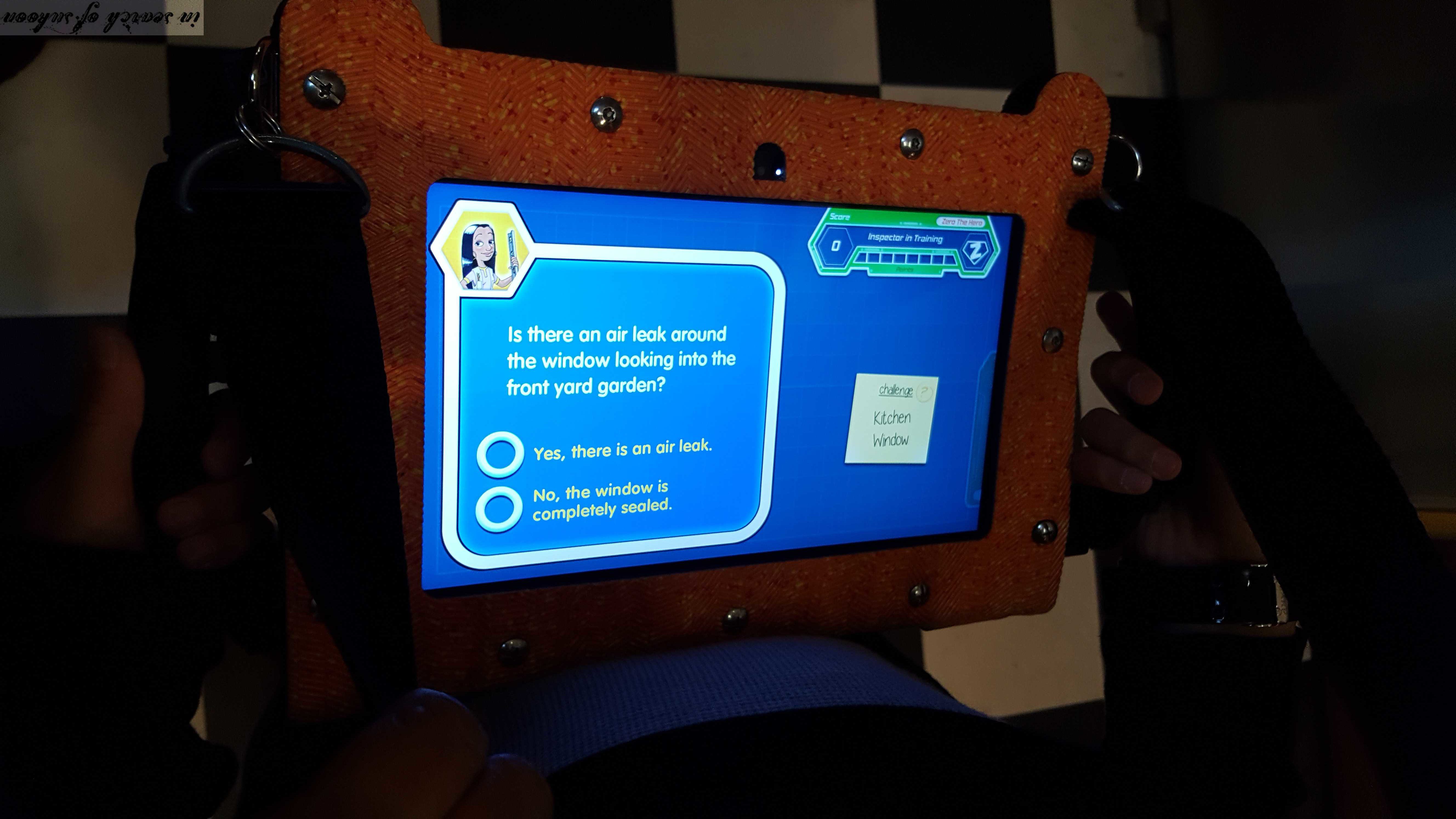 A tablet based scavenger hunt where the kids get to be inspectors and make sure the house is safe and sound. The interactive tablet makes the inspection super fun and if all he answers are correct you get your picture taken which is displayed on the wall.