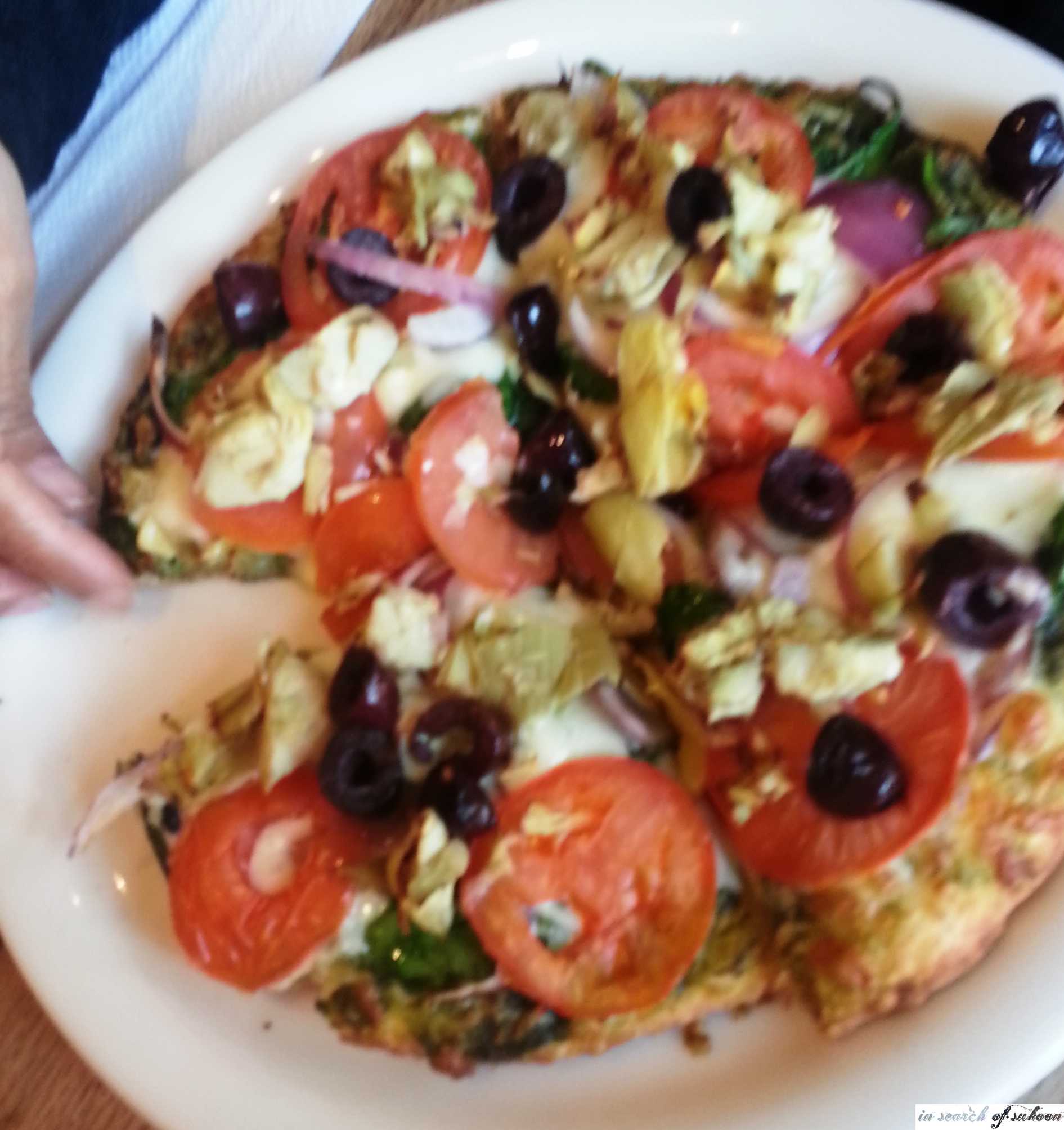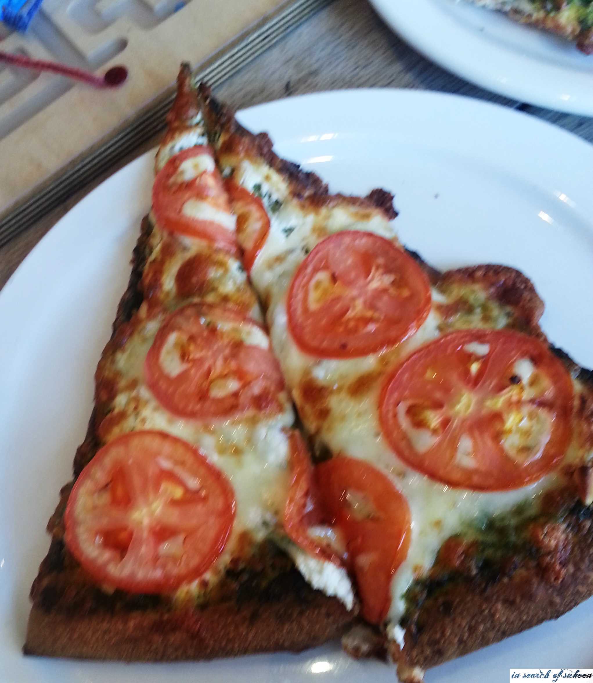 We ordered the gluten free crust pizza with vegan cheese and chicken, peaceful pesto pizza, Mediterranean pizza , BBQ Chicken pizza and Caesar salad over the phone.By the time we reached our order was ready. My oh my. Everything tasted amazing. The fresh salad with silky dressing, the yummy pizzas and amazing dessert pizzas…..yum!!!!