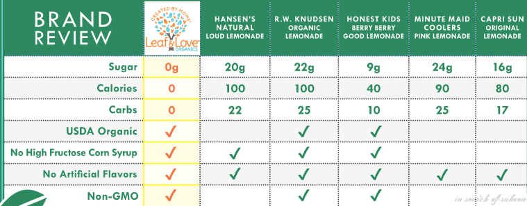 The ingredients are simple: Filtered water, Organic Lemon Juice, Stevia Extract, Himalayan Pink Salt. It is organic, non gmo, vegan, gluten free and has low glycemic index . It tastes just like a fresh lemonade and does not any aftertaste which is common in products sweetened with stevia. Good products for diabetics.