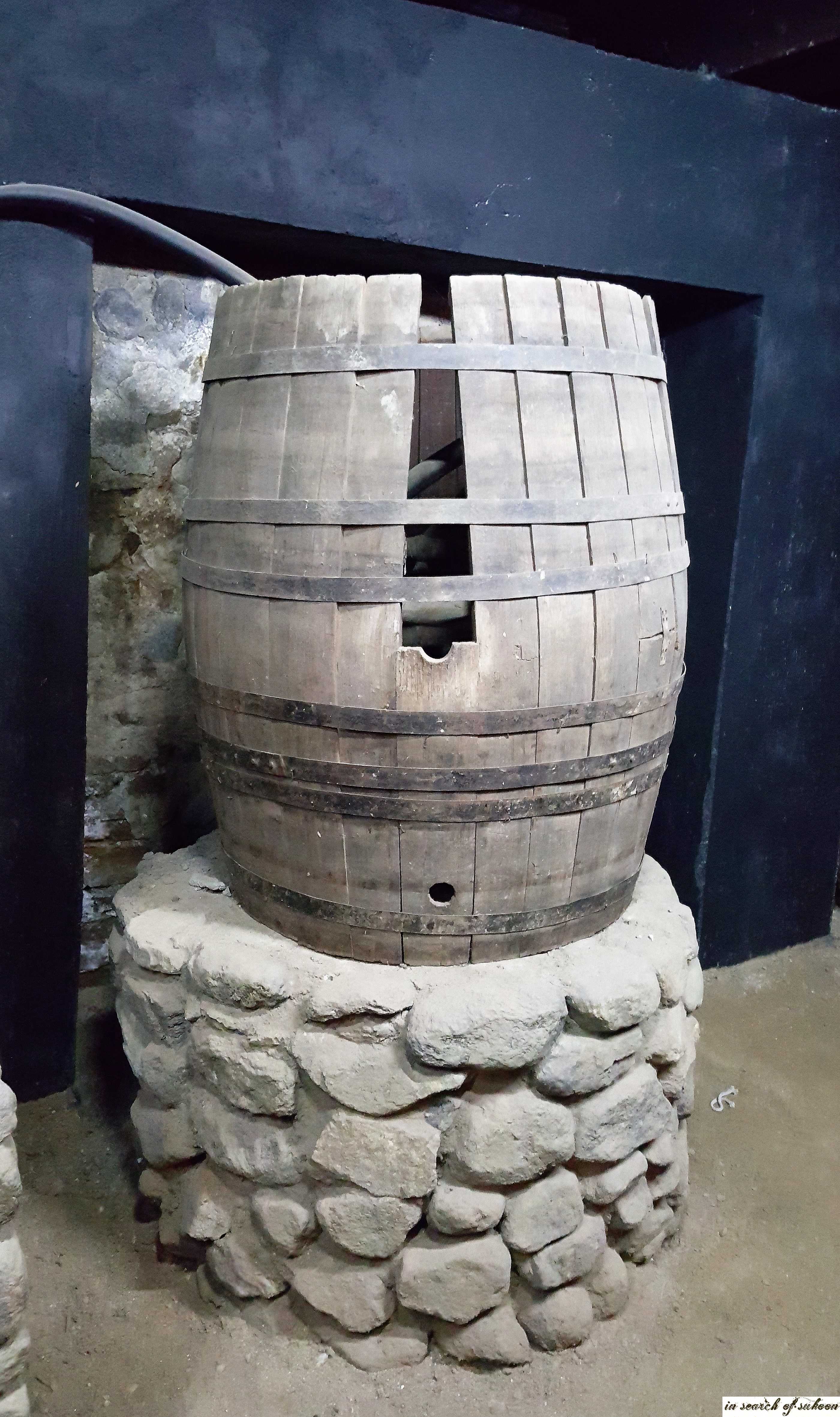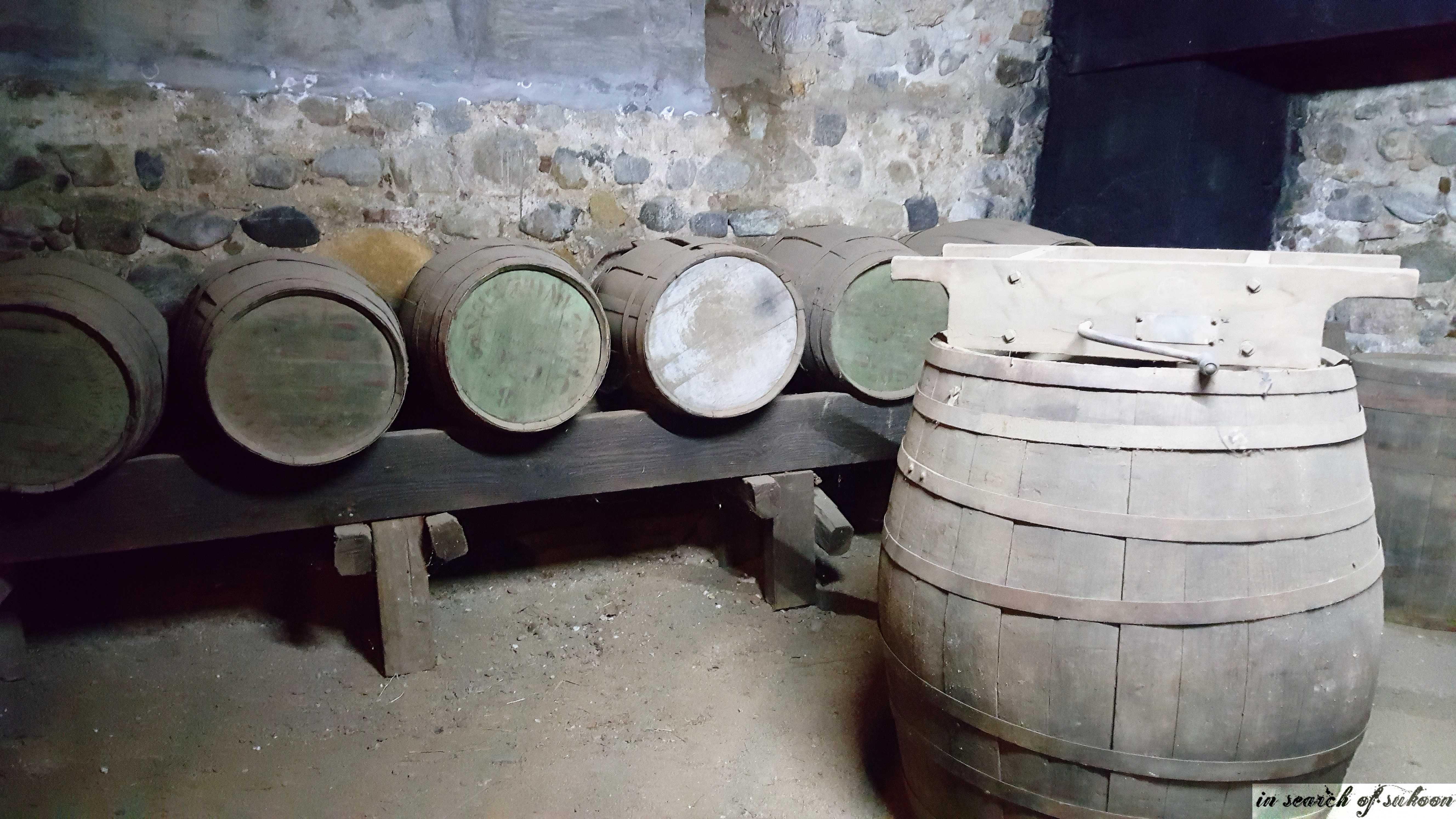 The wine cellar has been restored and it is in the basement of the building.