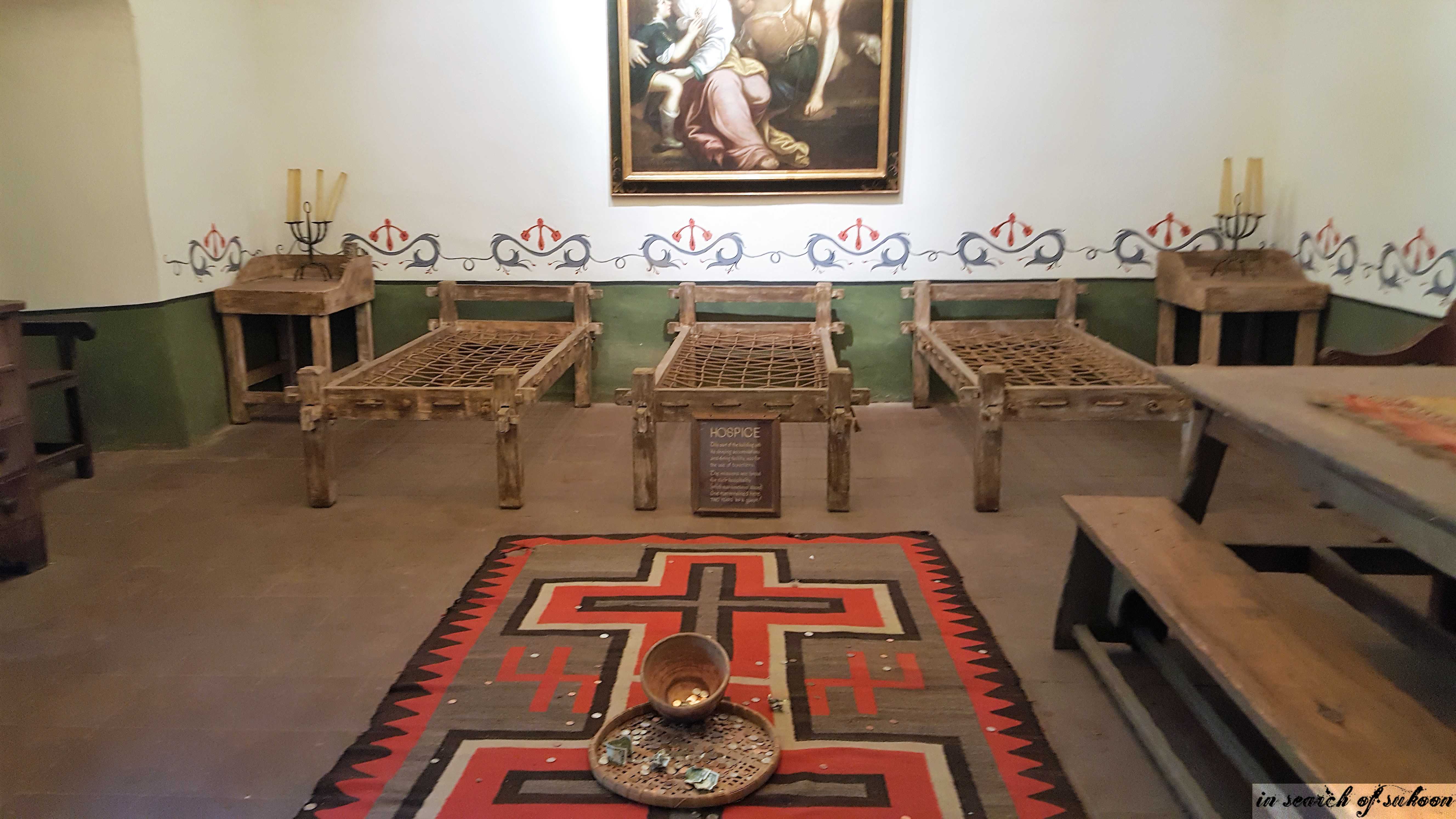 There are different rooms which have been reconstructed to show how the reception, hospice, travelers room, kitchen and meat smoking areas looked like.