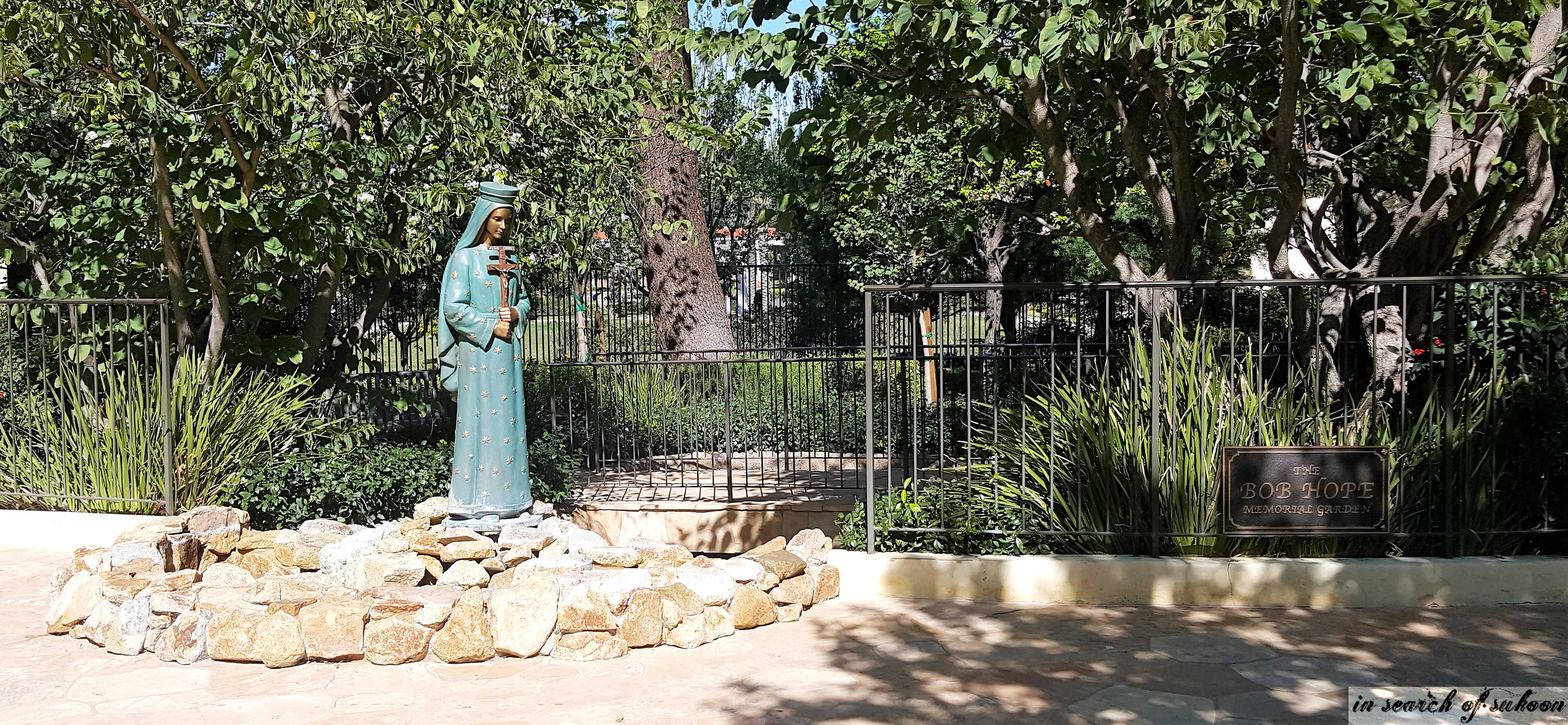 At the entrance of the garden is the statue of Lady of Hope which leads to the pathway to the garden and finally to the crypt where Bob and Dolores Hope are buried.